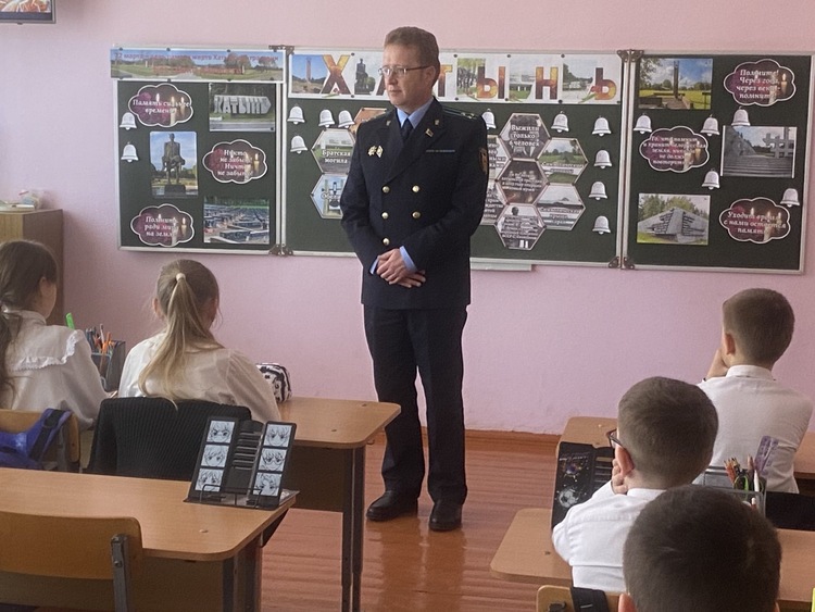В преддверии памятной даты 22 марта 1943 года, когда немецкие оккупанты и их пособники стерли с лица земли деревню Хатынь, прокурор Толочинского района Алексей Корсаков 19 марта 2026 года принял участие в Едином уроке, прошедшем в ГУО «Средняя школа №3 г.Толочина им.М.Б. Осиповой».
