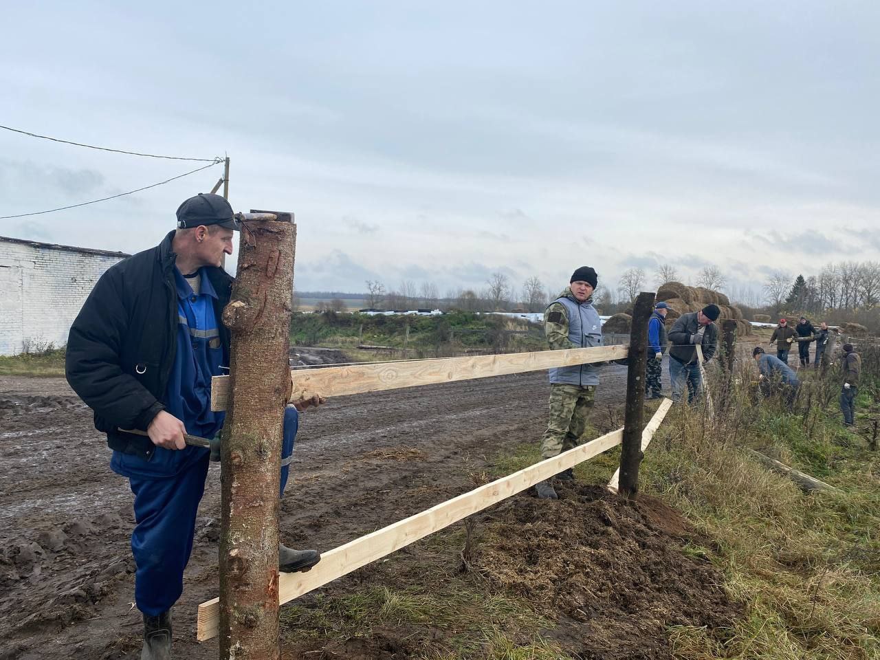 Так, сегодня команда депутатского корпуса во главе с председателем райсовета депутатов Георгием Мурашко работала на территории фермы "Новое Село" РУП "Племенной завод" Реконструктор". Вместе с работниками сельхозпредприятия, райисполкома и сектора спорта демонтировали ограждение и на его месте установили новое.