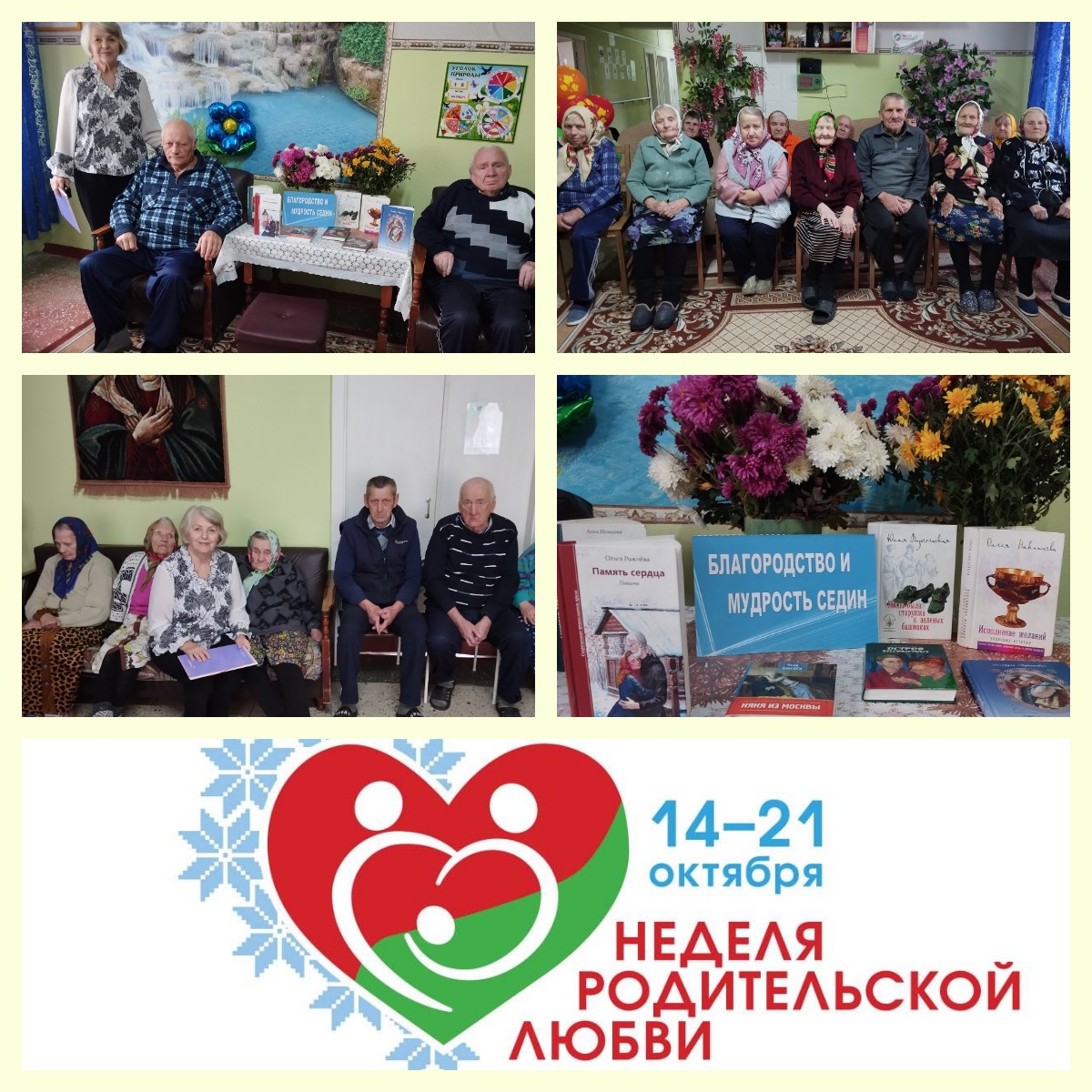 16 октября 2025 года в отделении круглосуточного пребывания для граждан пожилого возраста и инвалидов ГУ "ТЦСОН Толочинского района" в рамках социального проекта "Пристань добра и милосердия" сотрудником Кохановской горпоселковой библиотеки Цуприянович Марией Евгеньевной прошел вечер задушевного разговора "Тепло родительской души". Библиотекарь обратила внимание присутствующих на то, что в Беларуси во второй раз проходит Неделя родительской любви, которая началась 14 октября в День матери и закончится 21 октября в День отца, объединив эти две даты. Далее было сказано, что День матери и День отца занимают особое место среди многочисленных праздников, отмечаемых в нашей стране, что это праздники, к которым никто не может остаться равнодушным, ведь из поколения в поколение для каждого человека-родители самые главные люди в жизни. Также присутствующие услышали историю православного праздника Покров Пресвятой Богородицы.