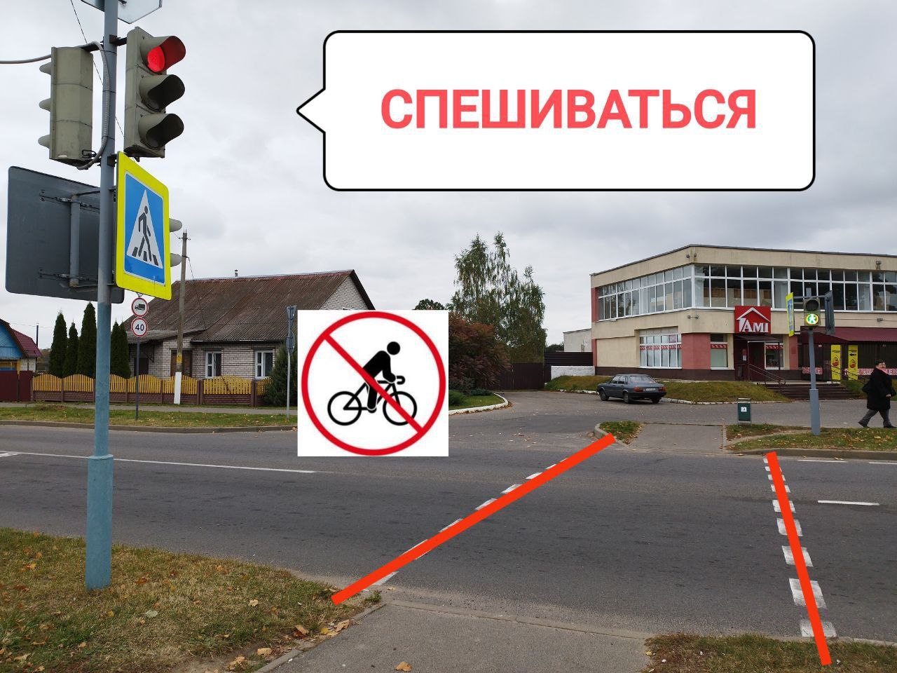В соответствии с новыми требованиями правил дорожного движения перед пересечением проезжей части велосипедист обязан спешиваться и переходить проезжую часть с соблюдением требований, предусмотренных для движения пешеходов.
